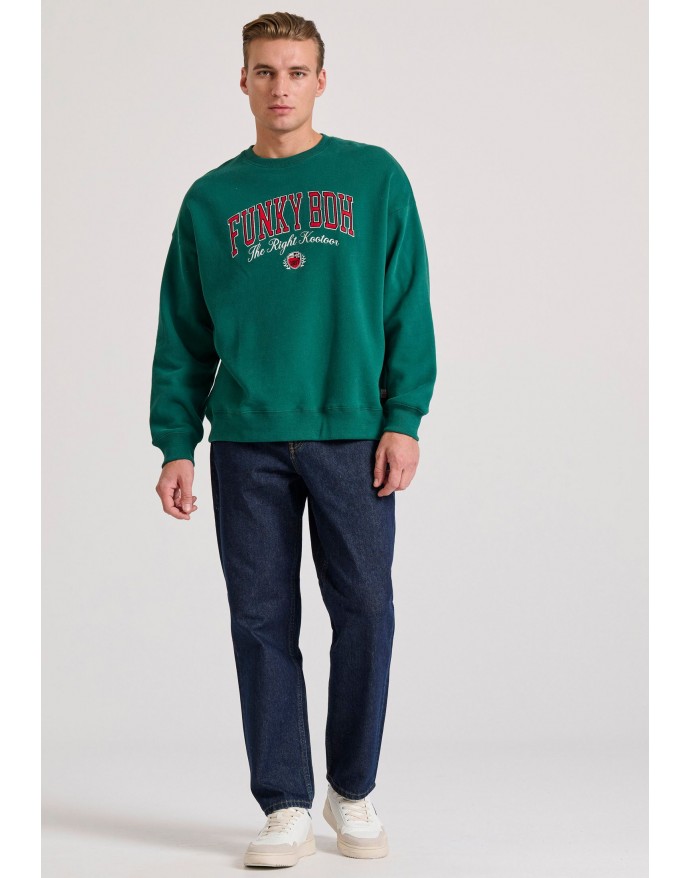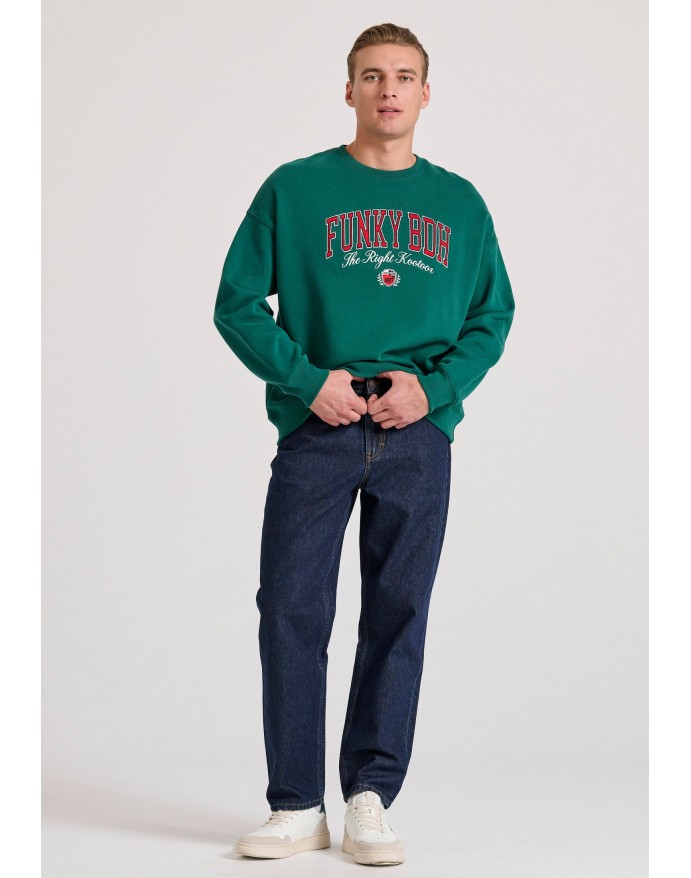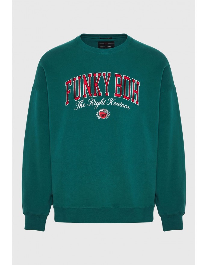 Ανδρικό oversized φούτερ με κέντημα Funky Buddha Deep Emerald FBM010-023-06