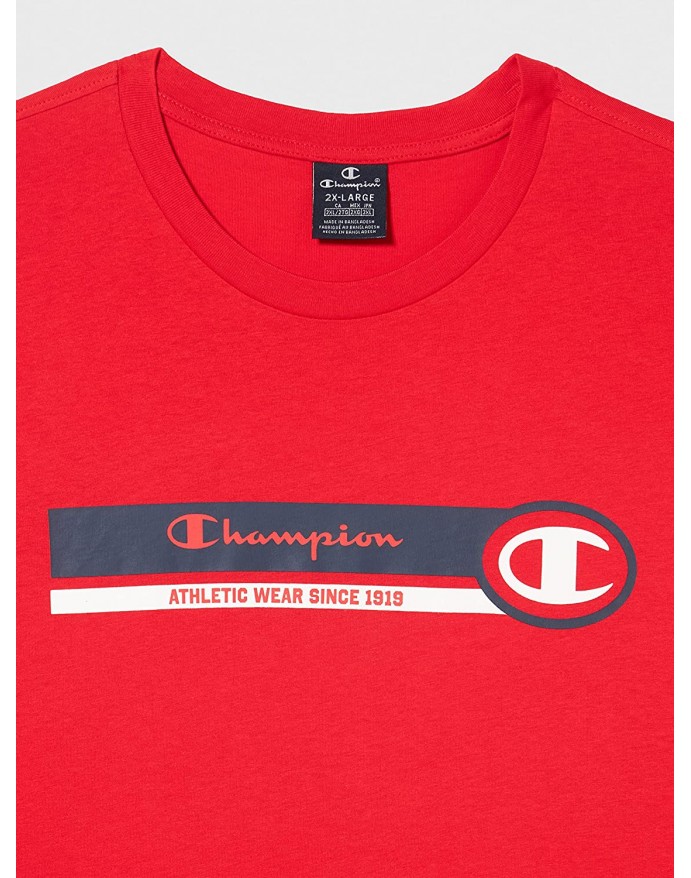 Champion Crewneck T-Shirt Ανδρική Κοντομάνικη Μπλούζα με τύπωμα Κόκκινο 218561-RS046