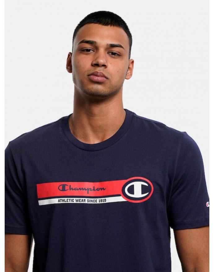 Champion Crewneck T-Shirt Ανδρική Κοντομάνικη Μπλούζα με τύπωμα Μπλε 218561-BS503