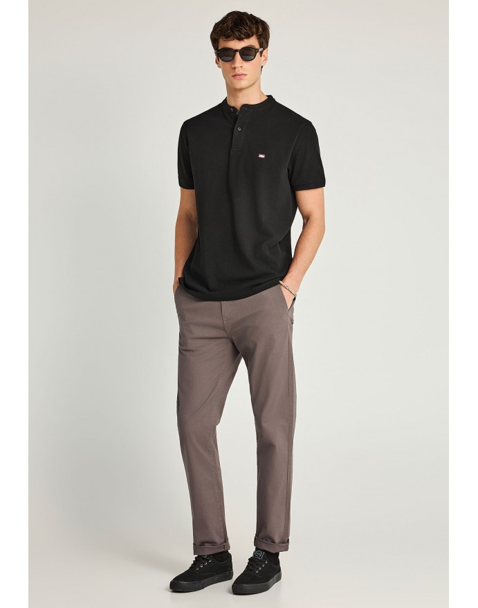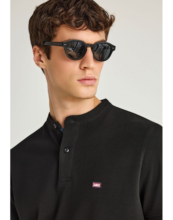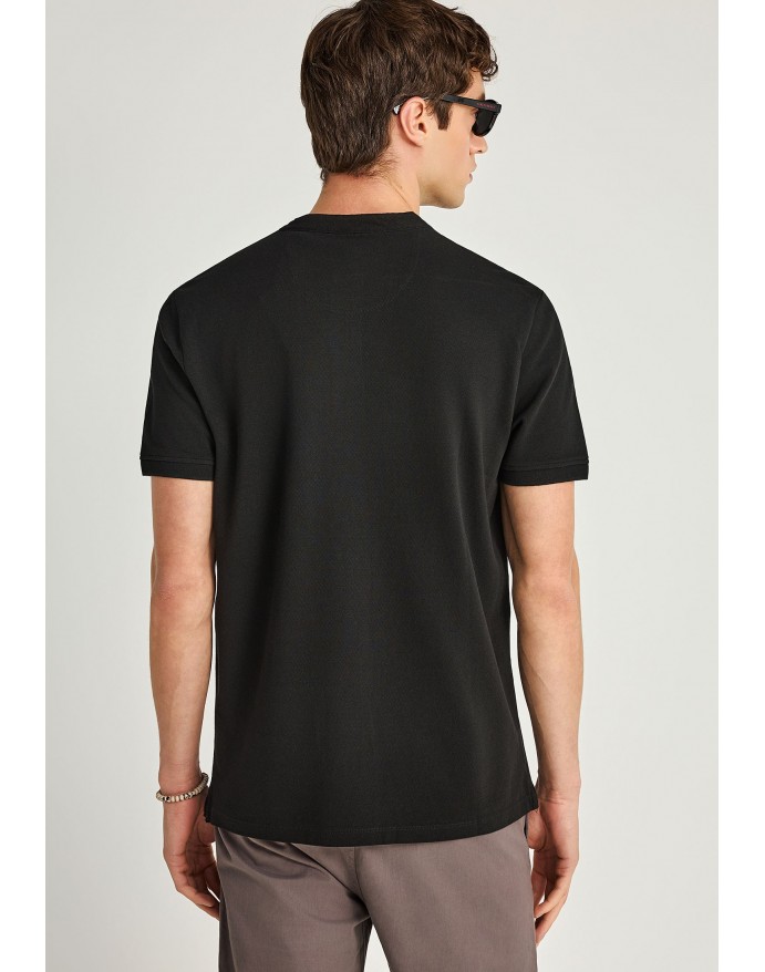 Funky Buddha Ανδρική Κοντομάνικη Μπλούζα Polo Pique με λαιμό Mao Black FBM013-003-11