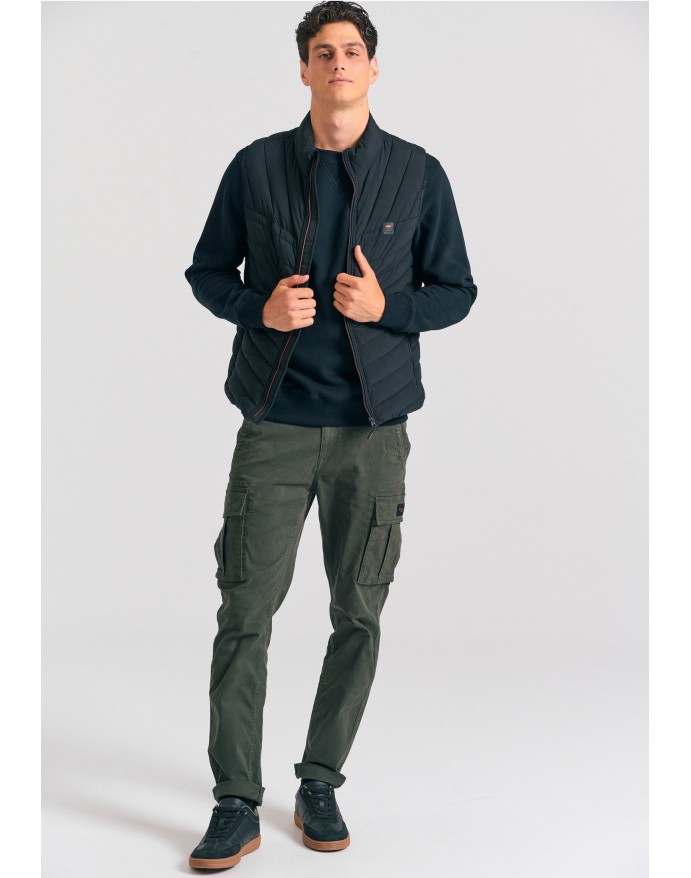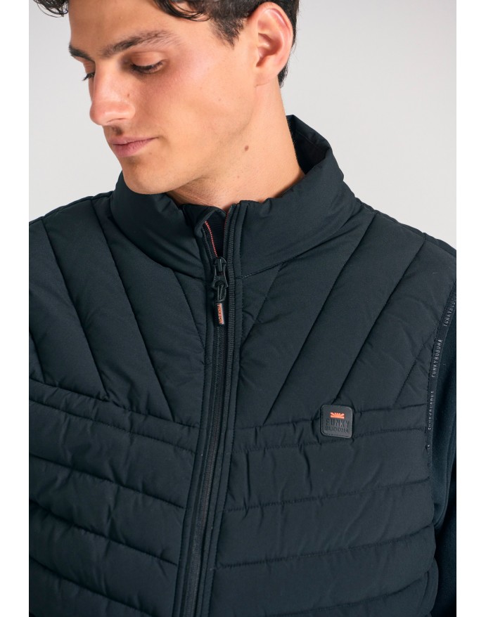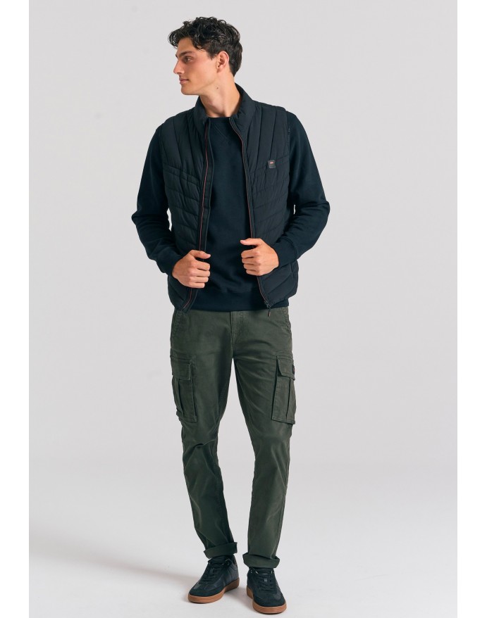 Αναβάθμισε το στυλ σου με αυτό το αμάνικο ανδρικό καπιτονέ μπουφάν – το απόλυτο layering κομμάτι για κάθε εποχή. Σχεδιασμένο σε κανονική γραμμή με μήκος μέχρι το ισχίο, προσφέρει άνεση και ευκολία στην κίνηση, ενώ ο ψηλός λαιμός και το κλείσιμο με φερμουάρ προσθέτουν λειτουργικότητα και urban χαρακτήρα. Η καπιτονέ υφή σε πολυεστερικό ύφασμα και η διακριτική λεπτομέρεια λογότυπου αναδεικνύουν τη minimal αλλά δυναμική αισθητική του. Συνδύασε το με σκούρο τζιν και μποτάκια για μια ανεπιτήδευτη αλλά κομψή εμφάνιση – ιδανικό για την πόλη ή τις εξορμήσεις σου.
