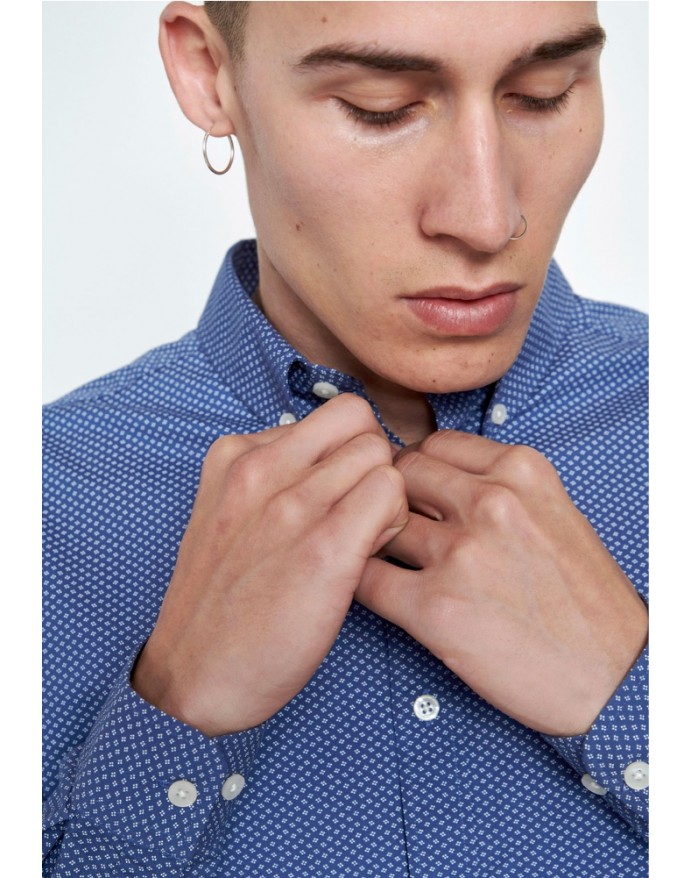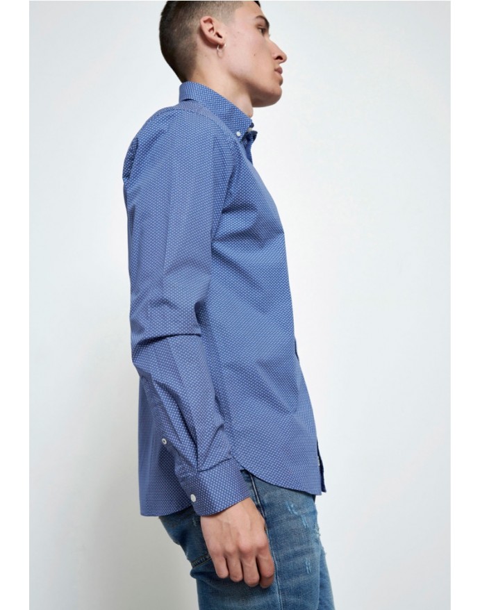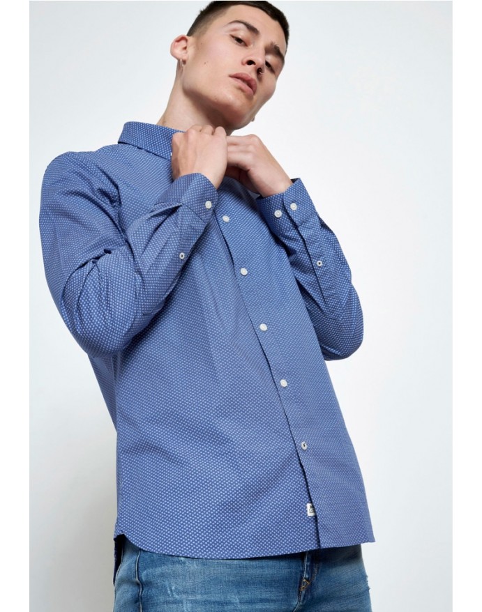 Funky Buddha Ανδρικό Casual Πουκάμισο με τύπωμα Denim Blue FBM003-055-05