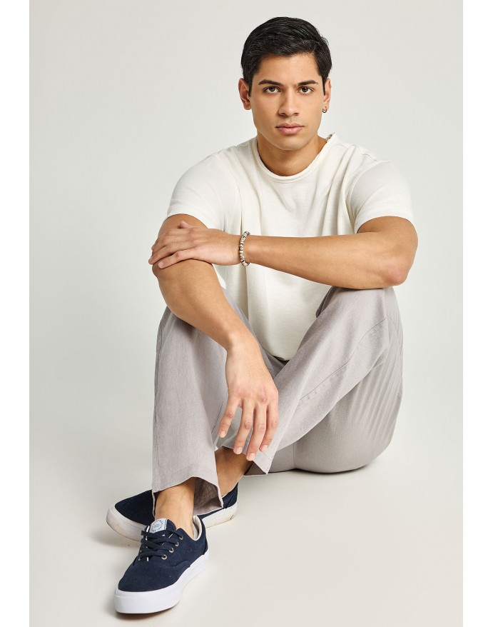 Funky Buddha Ανδρικό Comfort Fit Λινό Chino Παντελόνι Grey FBM013-011-02