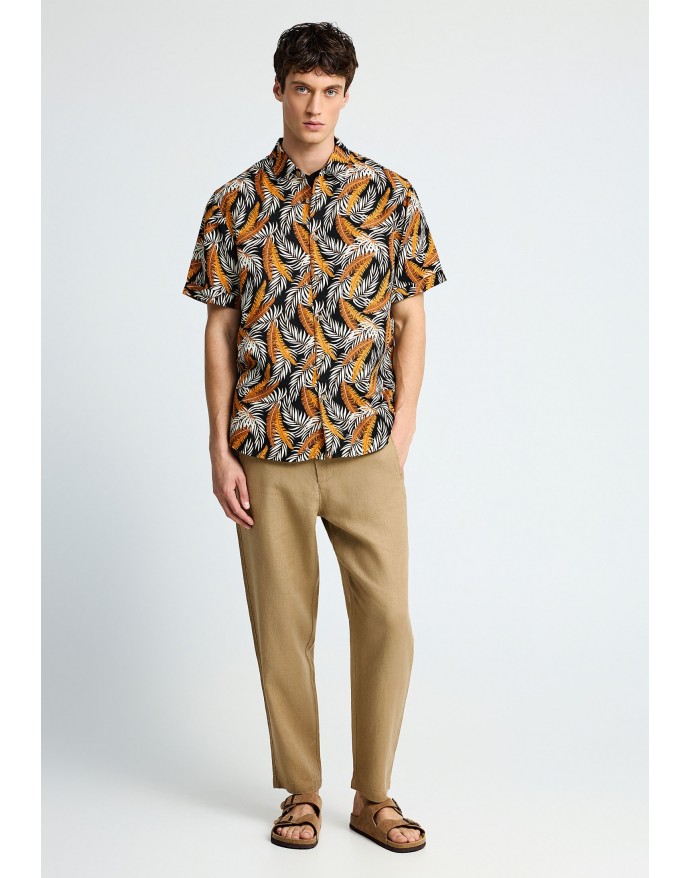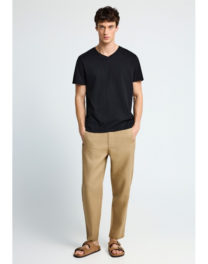 Funky Buddha Ανδρικό Comfort Fit Λινό Chino Παντελόνι Warm Sand FBM013-011-02