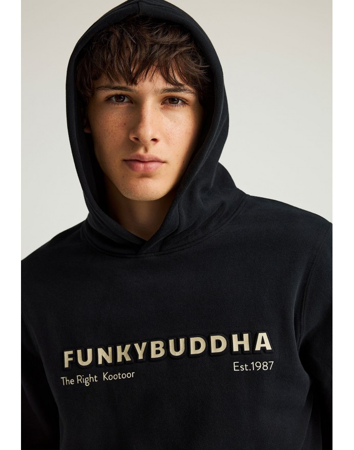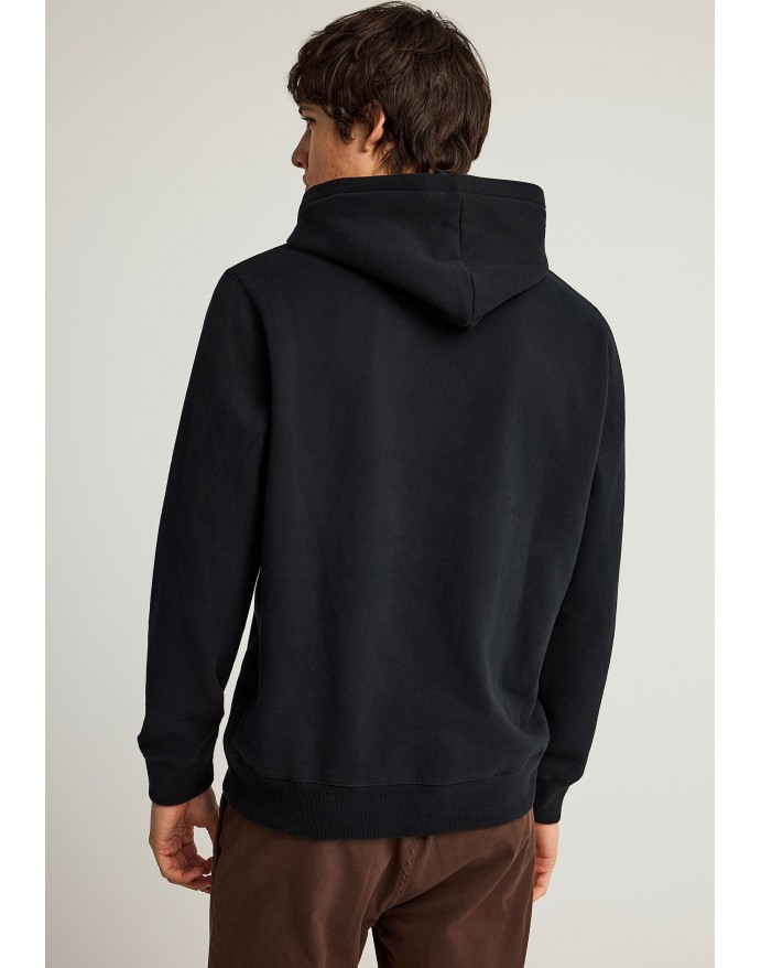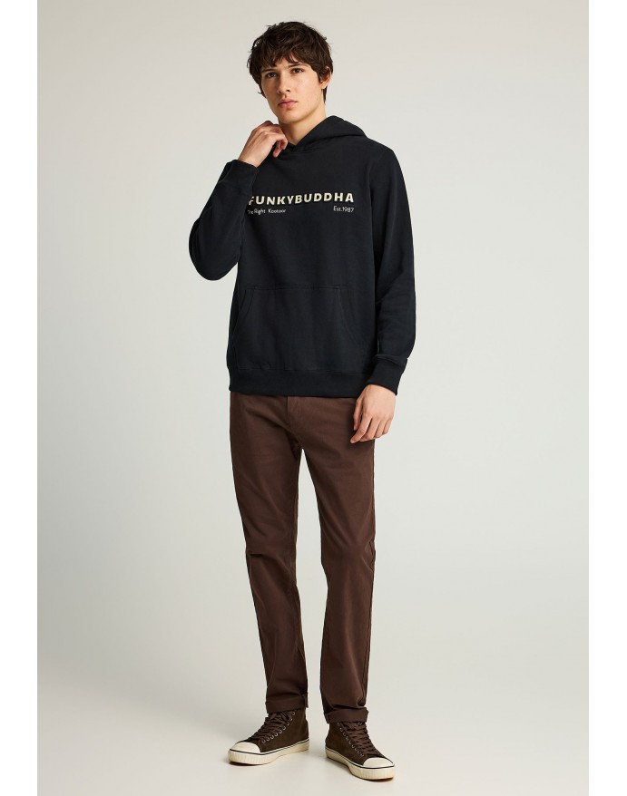 Ανδρικό regular-fit φούτερ με κουκούλα, ιδανικό για το φθινόπωρο και τον χειμώνα. Κατασκευασμένο από άνετο βαμβακερό μείγμα, προσφέρει απλή στρώση με ελαστικές μανσέτες και ζώνη στο στρίφωμα για τέλεια εφαρμογή. Διαθέτει μπροστινή τσέπη και μικρό γραφικό print που δίνει διακριτική urban πινελιά. Το ίσιο κόψιμο και η καλυμμένη στρογγυλή πλάτη το καθιστούν ιδανικό για καθημερινές εμφανίσεις. Συνδυάστε το με σκούρο τζιν και sneakers για ένα χαλαρό, σύγχρονο look.