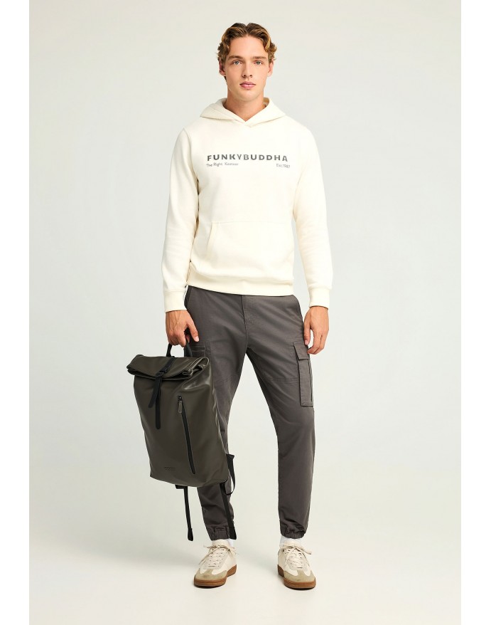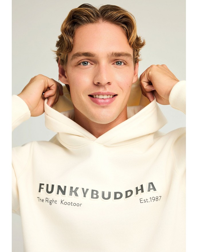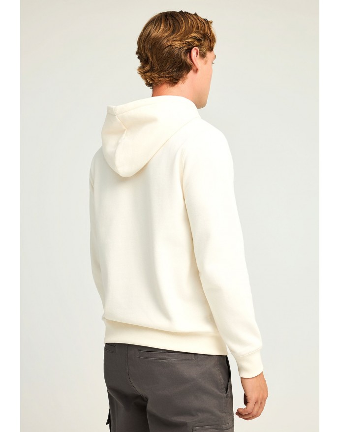 Ανδρικό regular-fit φούτερ με κουκούλα, ιδανικό για το φθινόπωρο και τον χειμώνα. Κατασκευασμένο από άνετο βαμβακερό μείγμα, προσφέρει απλή στρώση με ελαστικές μανσέτες και ζώνη στο στρίφωμα για τέλεια εφαρμογή. Διαθέτει μπροστινή τσέπη και μικρό γραφικό print που δίνει διακριτική urban πινελιά. Το ίσιο κόψιμο και η καλυμμένη στρογγυλή πλάτη το καθιστούν ιδανικό για καθημερινές εμφανίσεις. Συνδυάστε το με σκούρο τζιν και sneakers για ένα χαλαρό, σύγχρονο look.