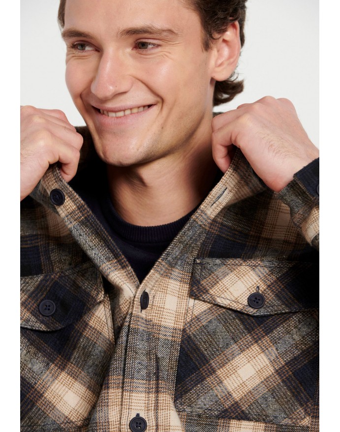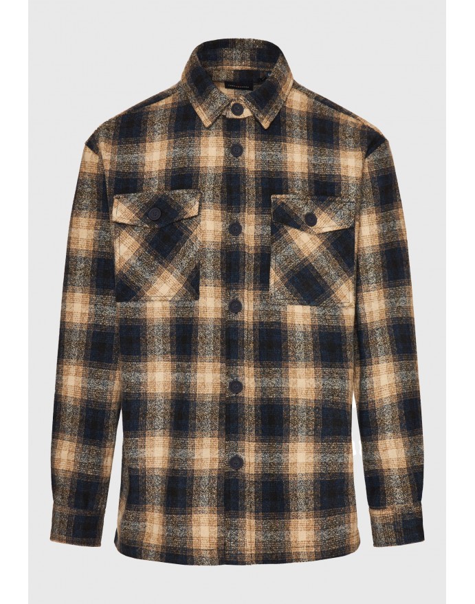 Funky Buddha Ανδρικό Καρό Oversized Flannel Overshirt Πουκάμισο Navy FBM008-082-05