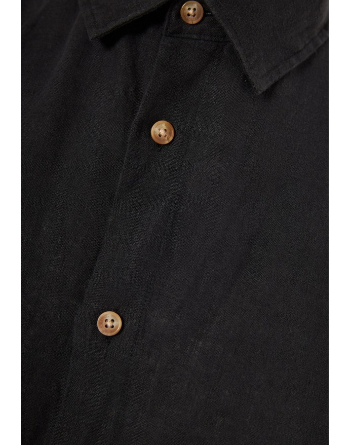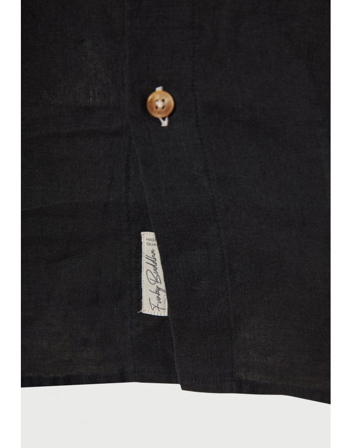 Funky Buddha Ανδρικό Λινό Πουκάμισο Black FBM013-001-05
