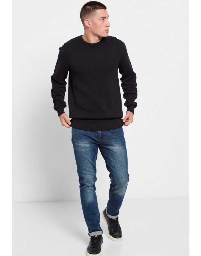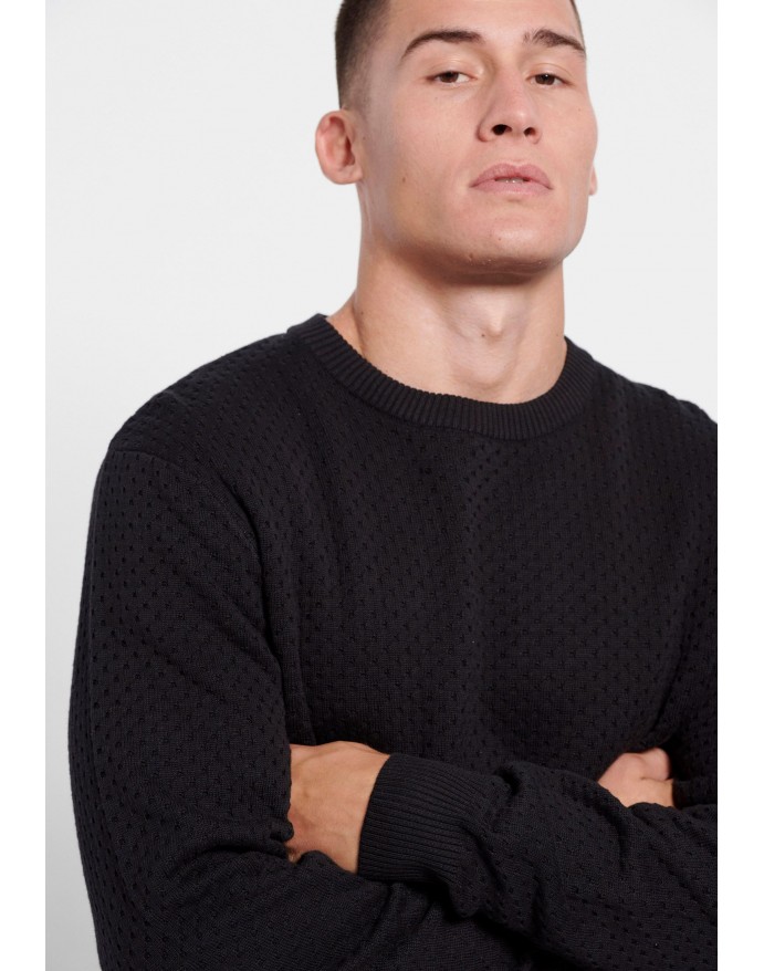 Funky Buddha Ανδρικό Relaxed Fit Πουλόβερ με 3D πλέξη Black FBM008-019-09