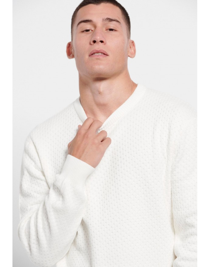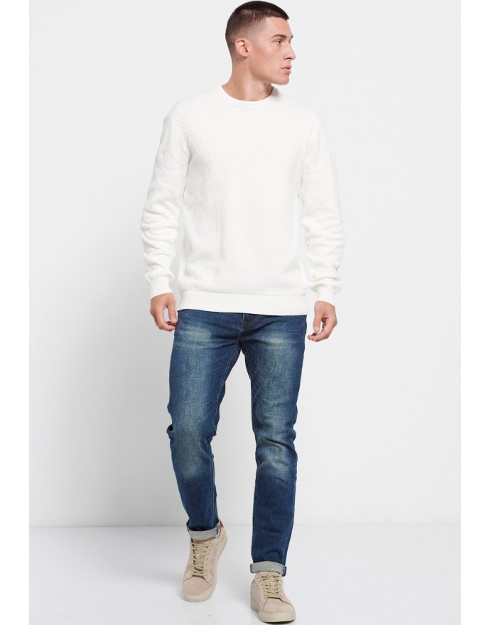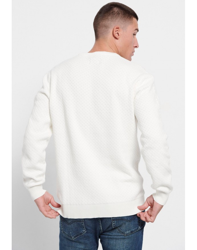 Funky Buddha Ανδρικό Relaxed Fit Πουλόβερ με 3D πλέξη Off White FBM008-019-09