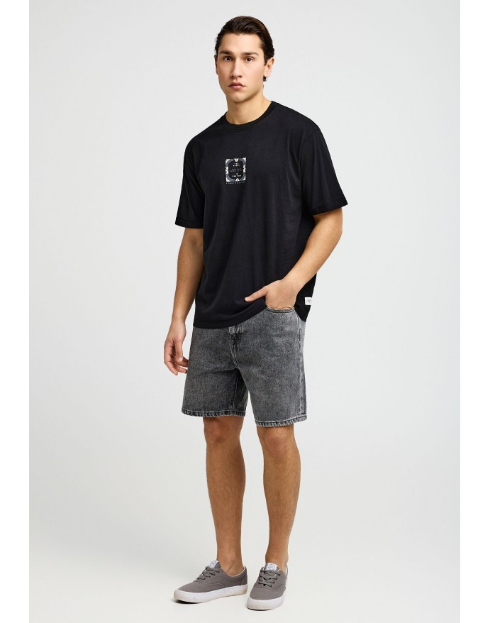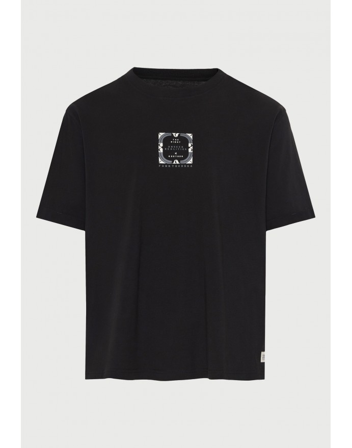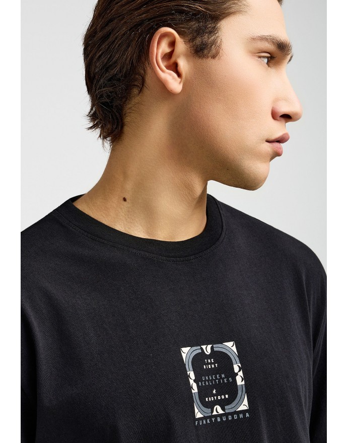 Funky Buddha Ανδρικό Relaxed T-Shirt με τύπωμα στην πλάτη Black FBM013-050-04
