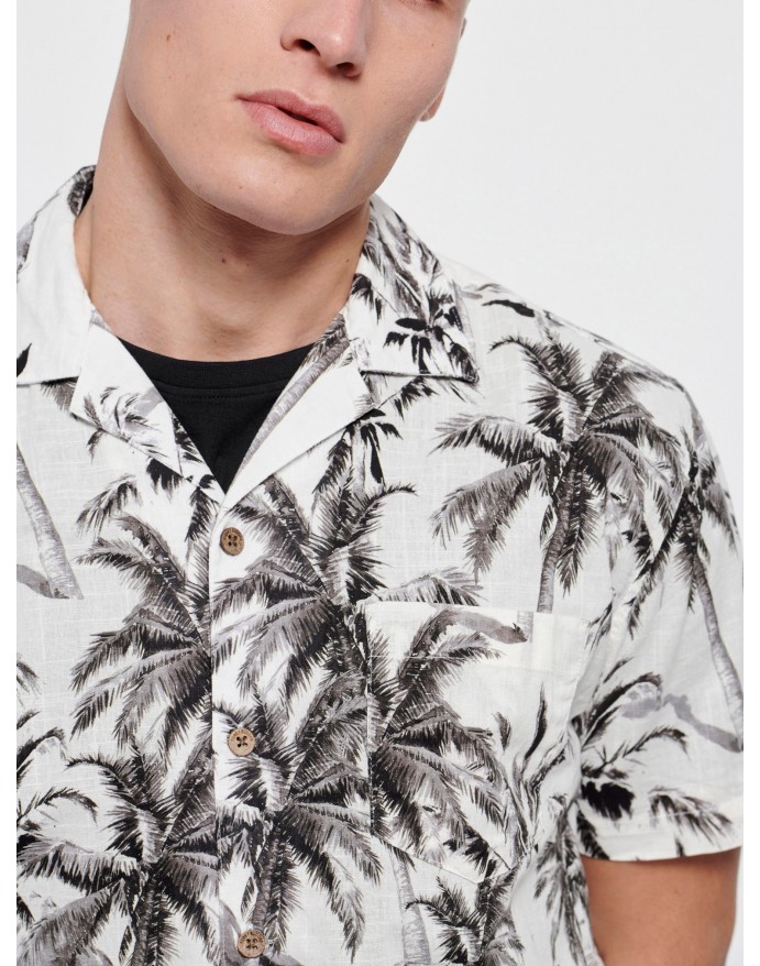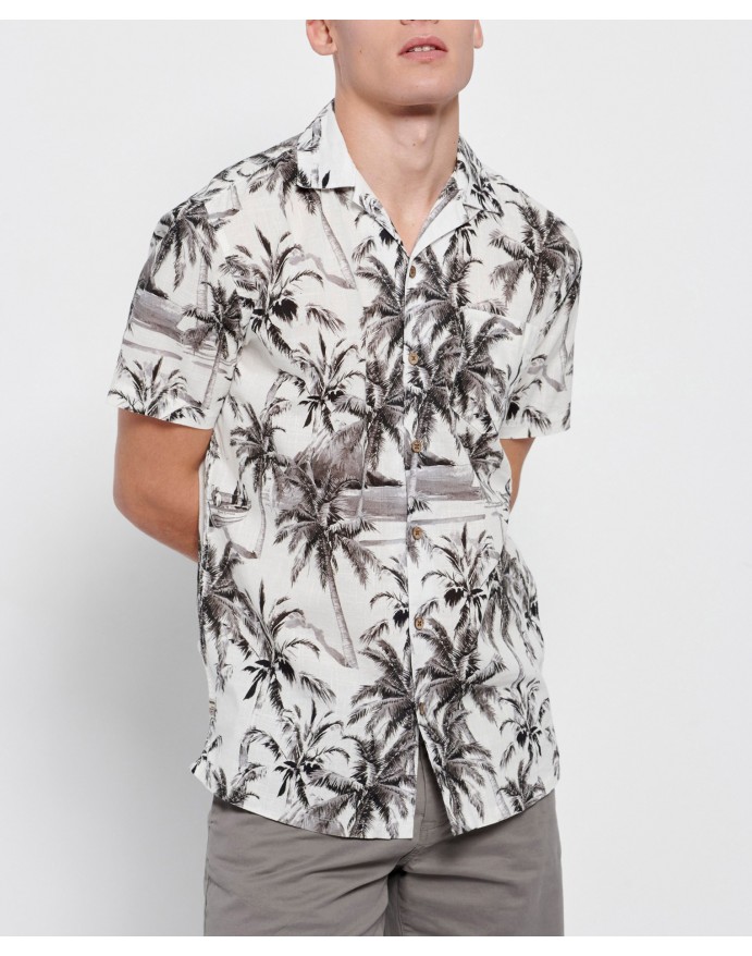 Funky Buddha Ανδρικό Resort Πουκάμισο με all over τύπωμα Off White FBM007-036-05