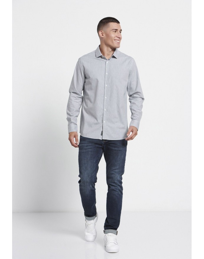 Funky Buddha Ανδρικό Ριγέ Πουκάμισο Anthracite FBM008-006-05