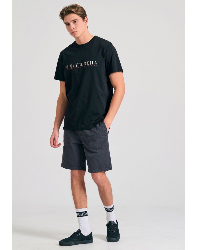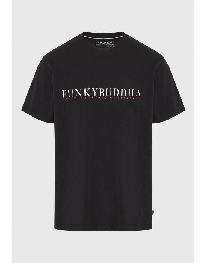 Funky Buddha Ανδρικό T-Shirt με branded τύπωμα στο στήθος Black FBM011-015-04