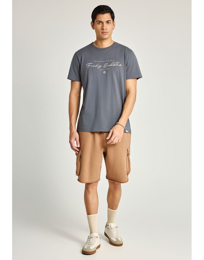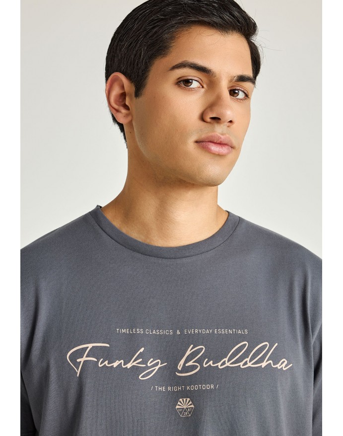 Funky Buddha Ανδρικό T-Shirt με λογότυπο Dk Grey FBM013-022-04