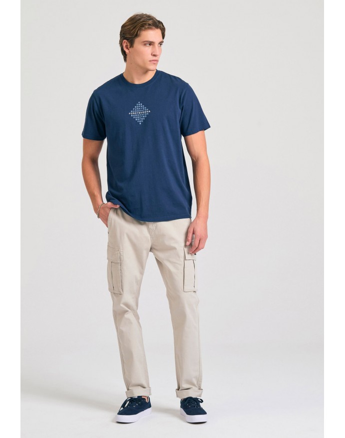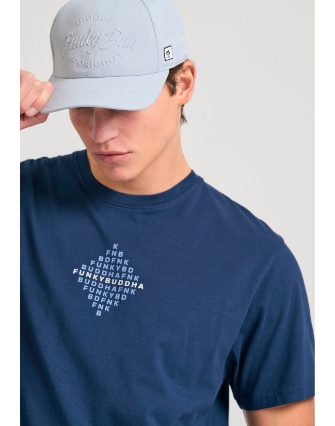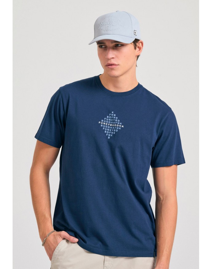 Funky Buddha Ανδρικό T-Shirt με τύπωμα στο στήθος Navy FBM011-048-04