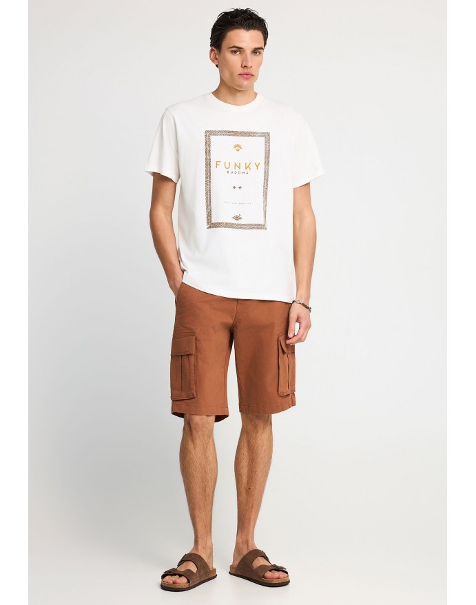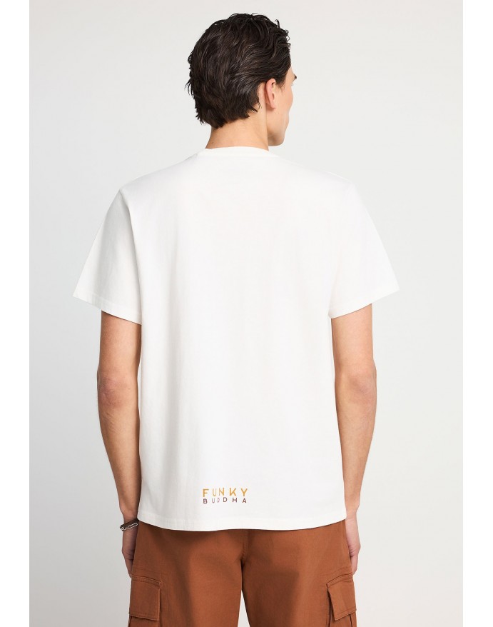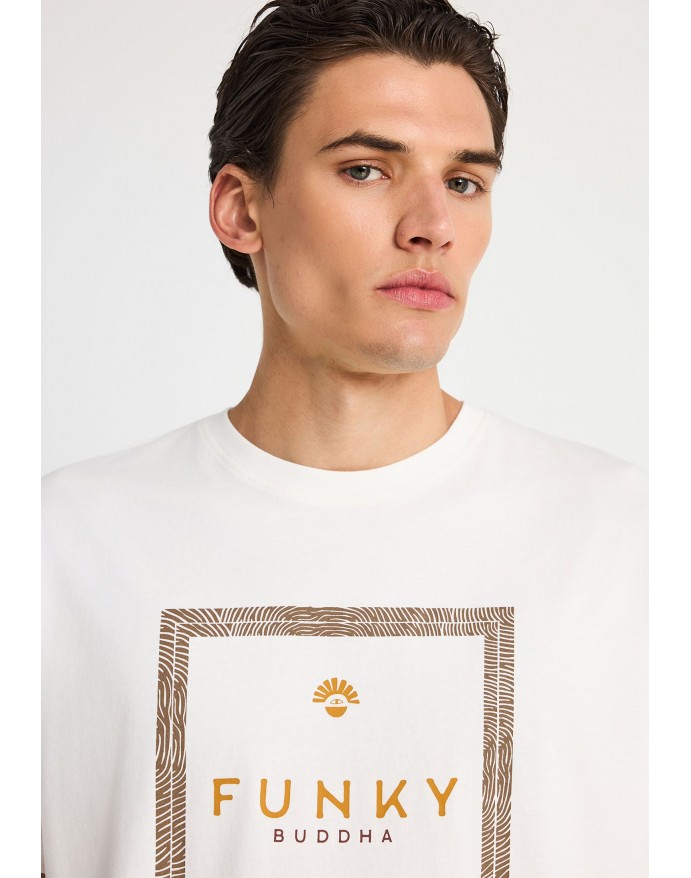 Funky Buddha Ανδρικό Βαμβακερό T-Shirt με τύπωμα Off White FBM013-044-04