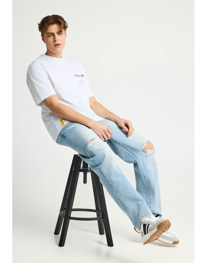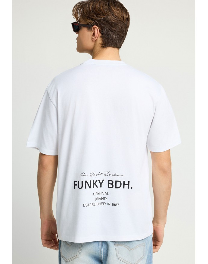 Funky Buddha Ανδρικό Βαμβακερό T-Shirt με τύπωμα Optical White FBM013-015-04