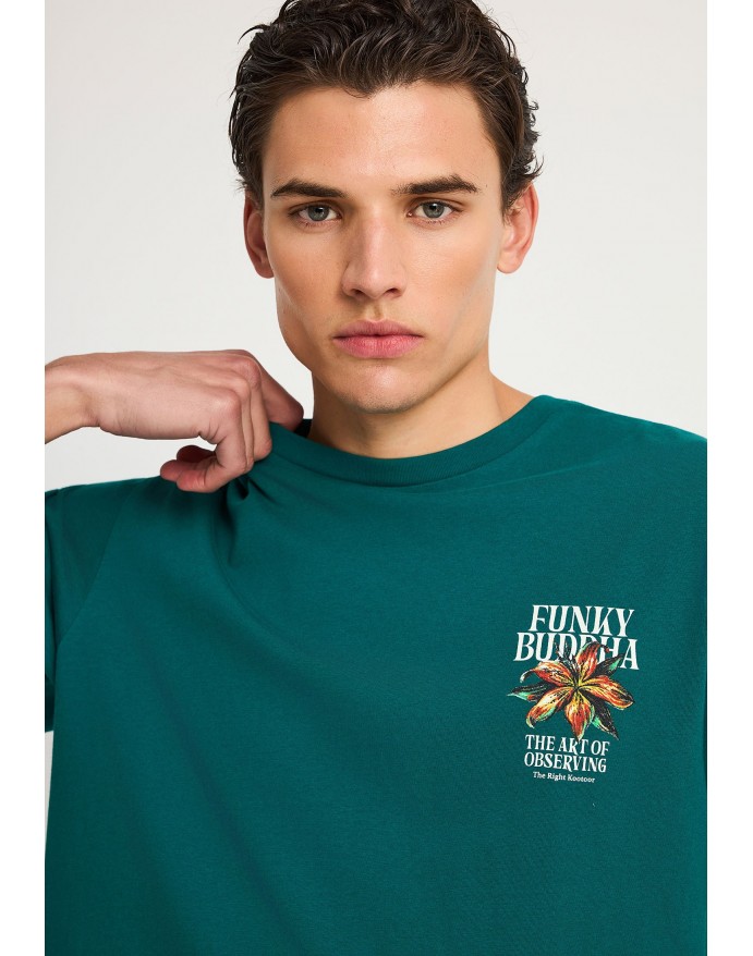Αυτό το ανδρικό βαμβακερό t-shirt με τύπωμα στην πλάτη είναι η ιδανική επιλογή για άνεση και στυλ. Η απαλή αίσθηση του 100% βαμβακιού αγκαλιάζει το σώμα, ενώ το εντυπωσιακό σχέδιο στην πλάτη προσδίδει μια ξεχωριστή πινελιά στο ντύσιμό σου. Απόλαυσε την ανεπιτήδευτη κομψότητα, επιλέγοντας ένα t-shirt που συνδυάζει την ποιότητα με την αισθητική. Συνδύασέ το με ένα τζιν και sneakers για ένα χαλαρό, αλλά πάντα προσεγμένο look.