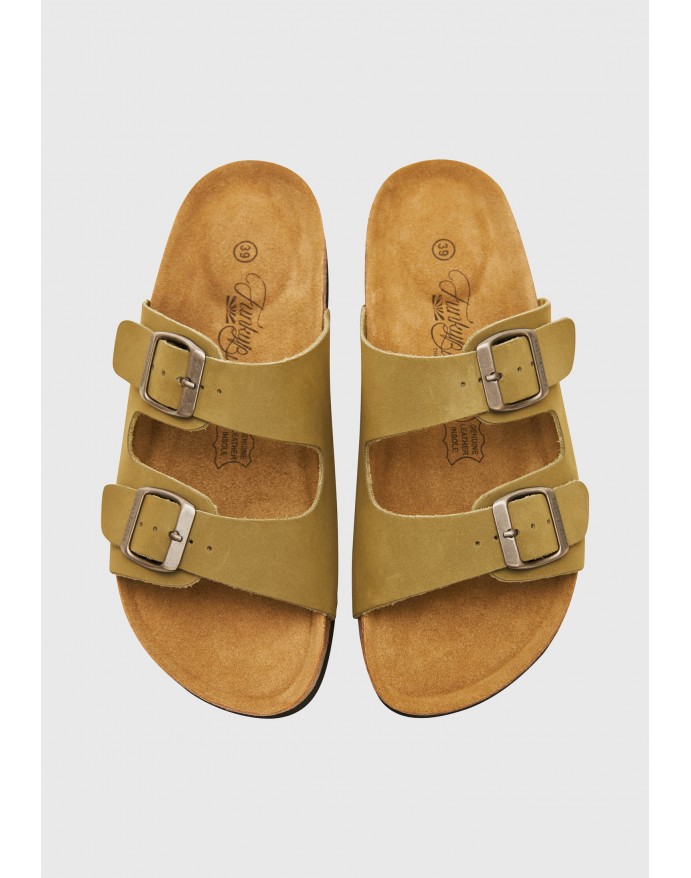 Funky Buddha Γυναικεία Δερμάτινα Σανδάλια Olive FBL009-110-08