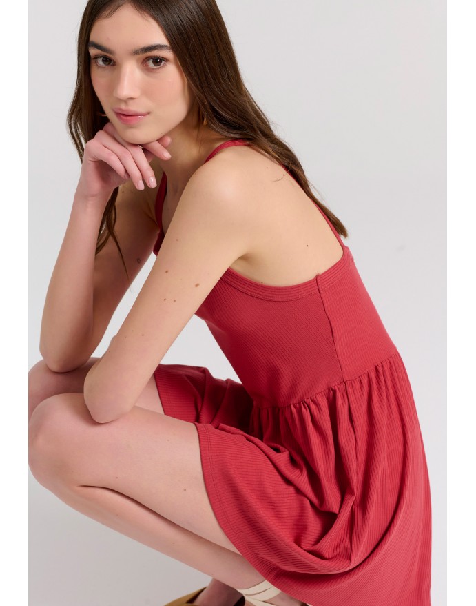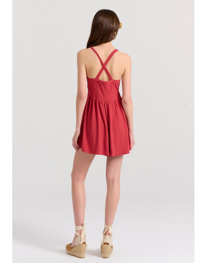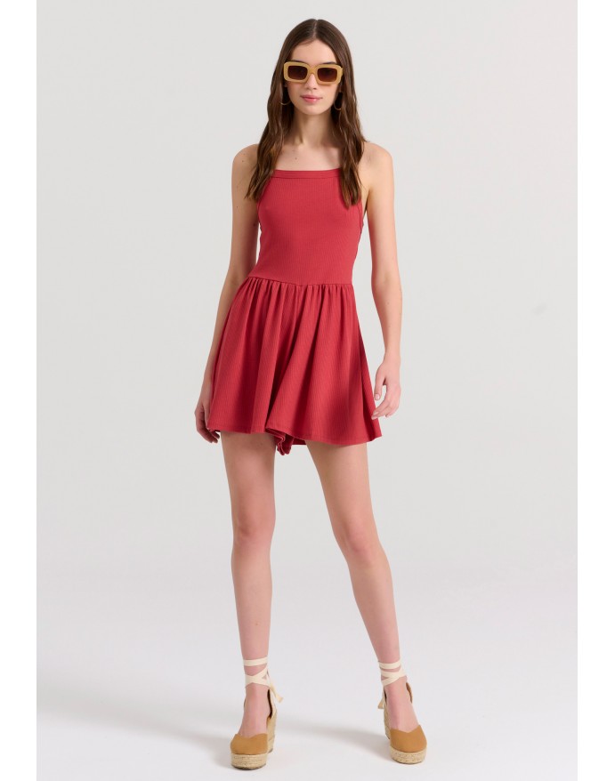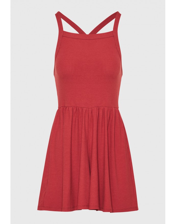 Funky Buddha Γυναικεία Ολόσωμη Φόρμα Σορτς σε Rib Ύφανση Mineral Red FBL009-100-12