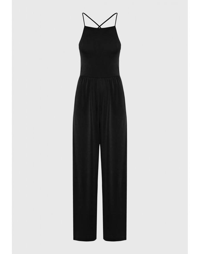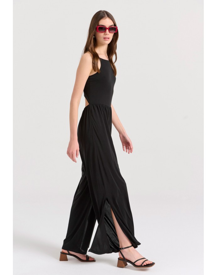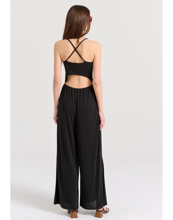 Funky Buddha Γυναικεία Ολόσωμη Φόρμα Wide Leg με πλαϊνά ανοίγματα Black FBL009-101-12