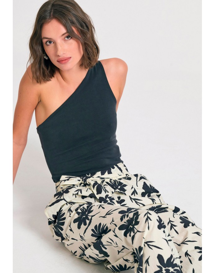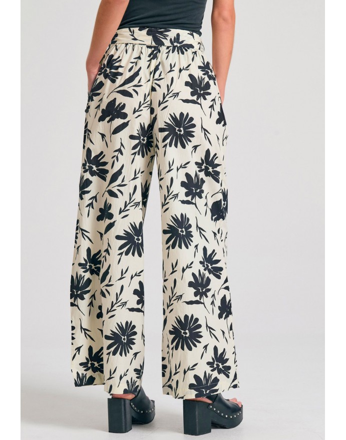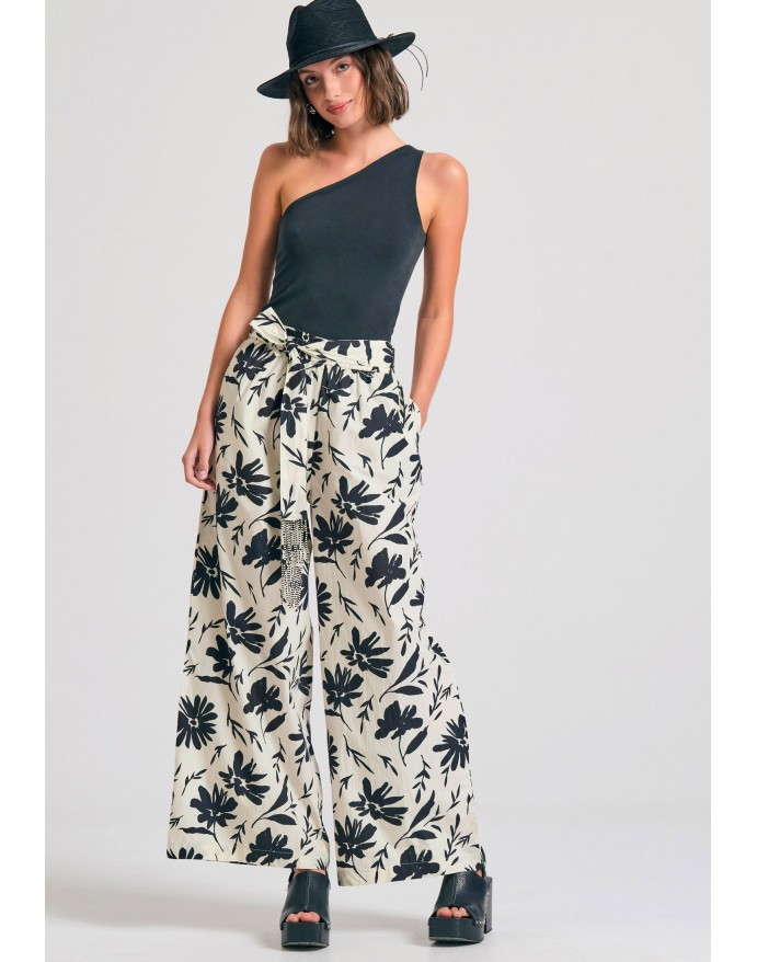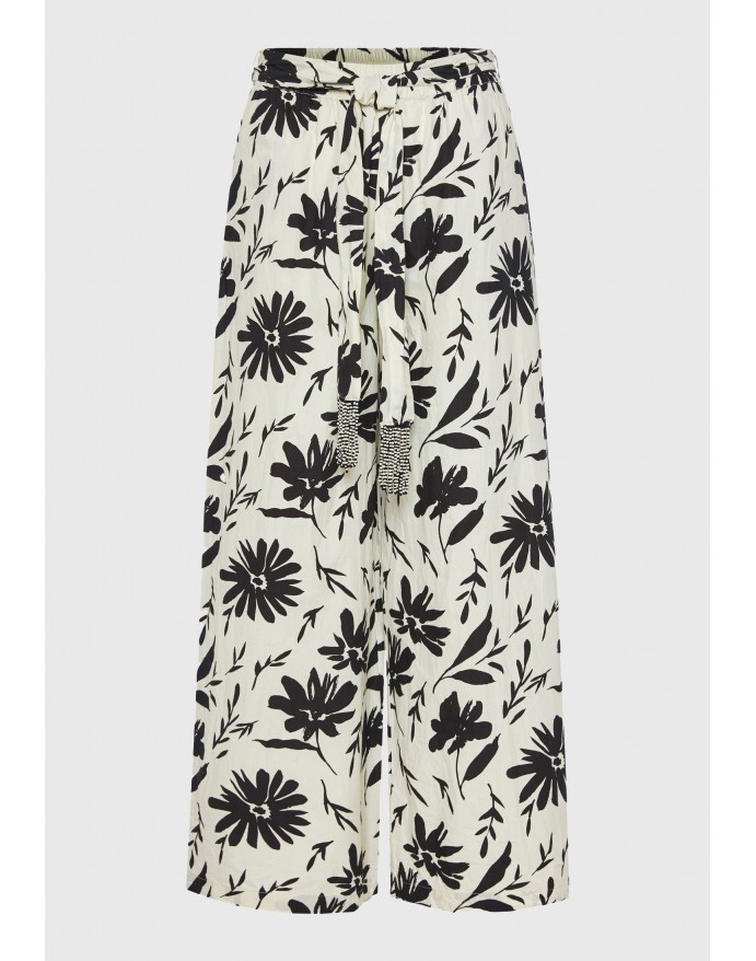 Funky Buddha Γυναικεία παντελόνα wide leg με exotic τύπωμα Off White FBL011-122-02