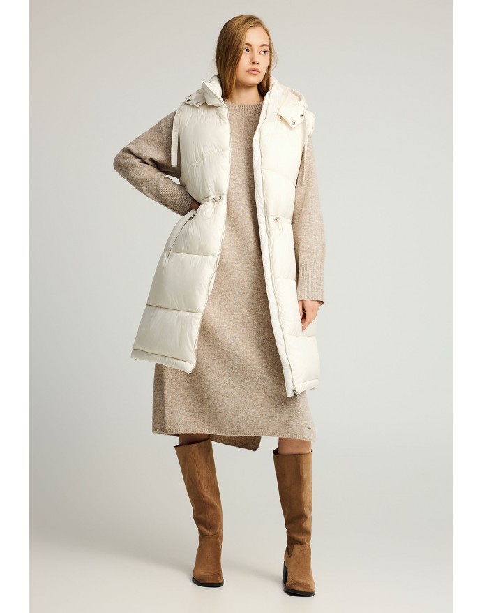Funky Buddha Γυναικείο Αμάνικο Μπουφάν με λάστιχο στην μέση Off White FBL012-112-01