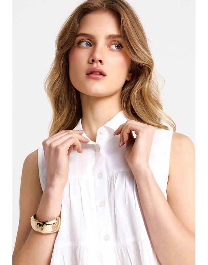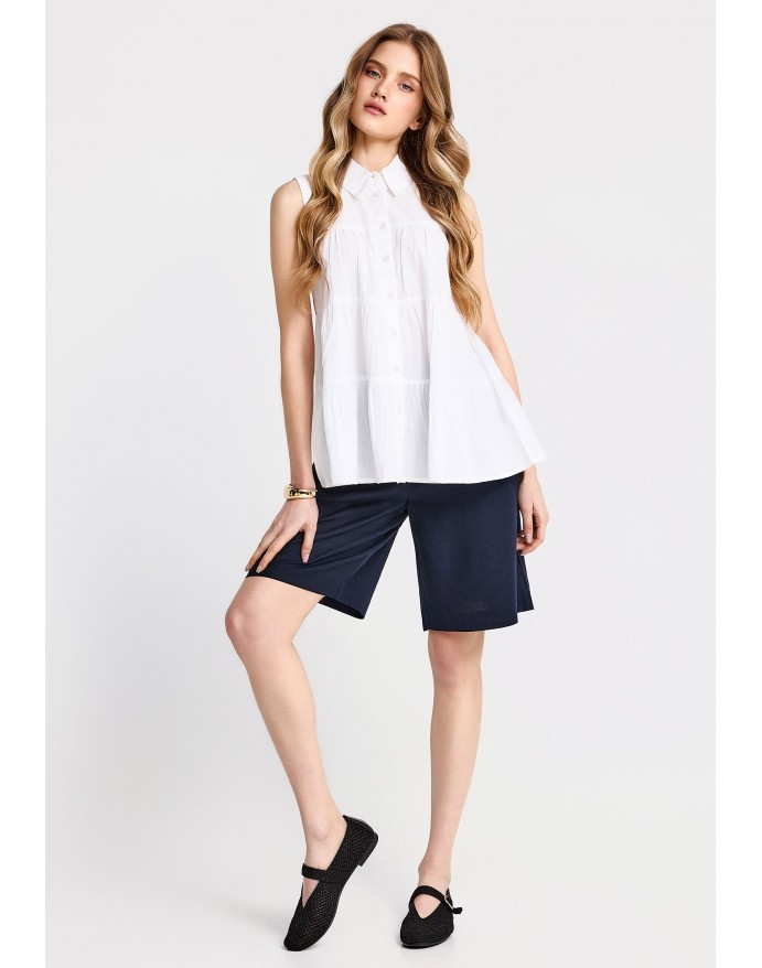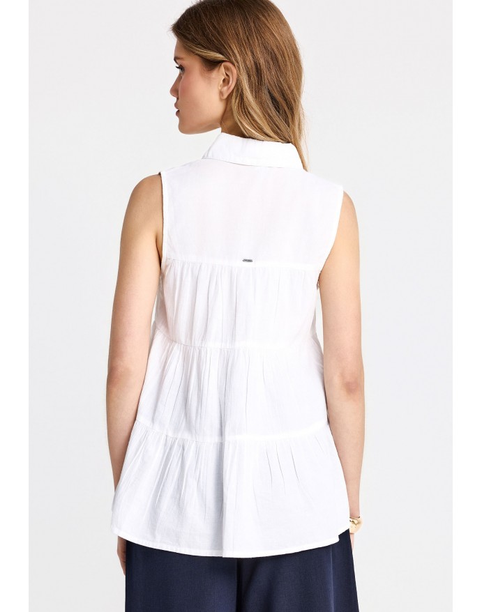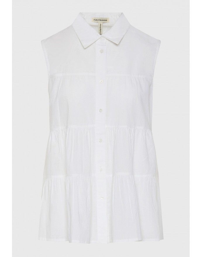 Funky Buddha Γυναικείο Αμάνικο Πουκάμισο με βολάν White FBL013-122-05