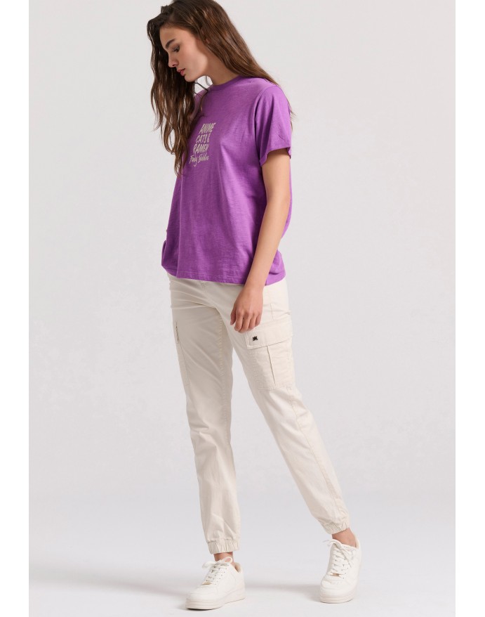 Funky Buddha Γυναικείο Cargo Παντελόνι με λάστιχο Chalk FBL009-101-02