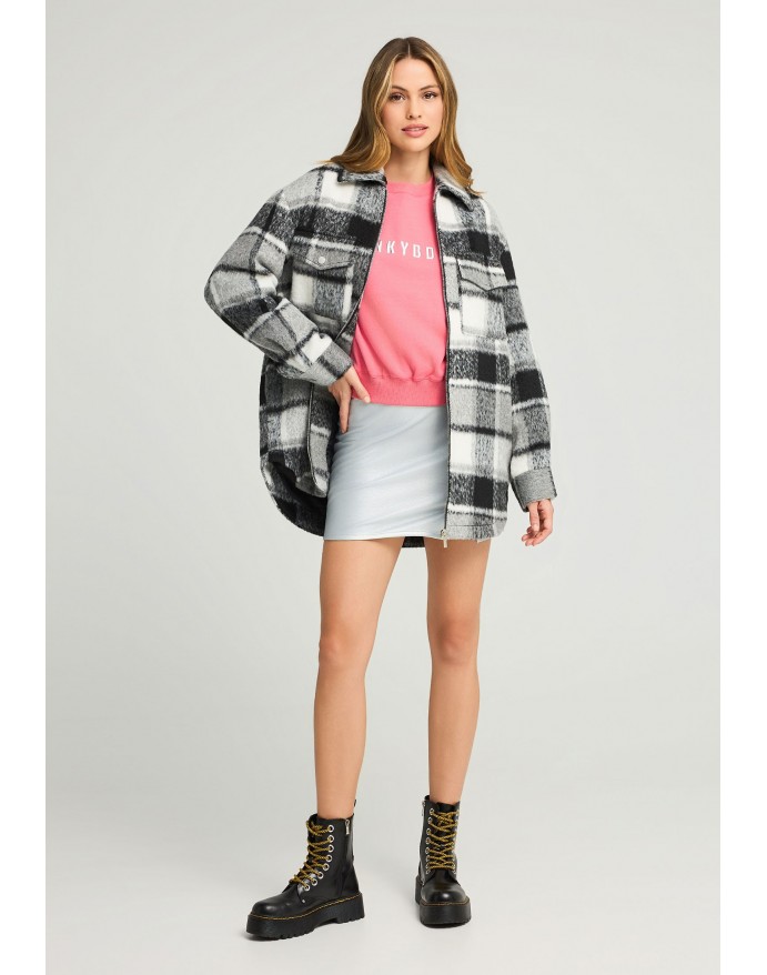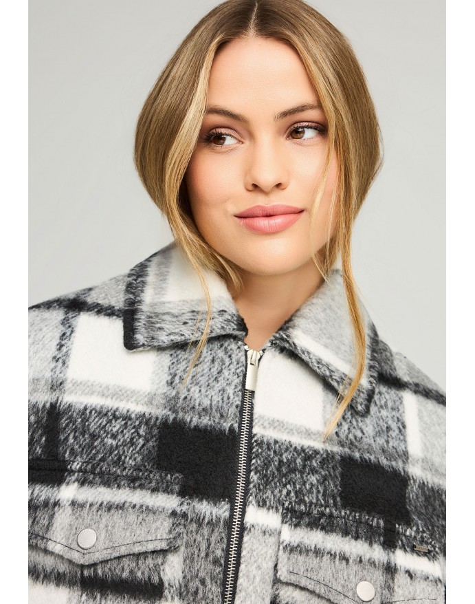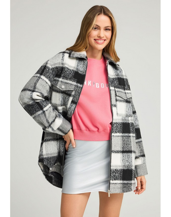 Funky Buddha Γυναικείο Καρό Παλτό με κούμπωμα φερμουάρ Black FBL012-126-01