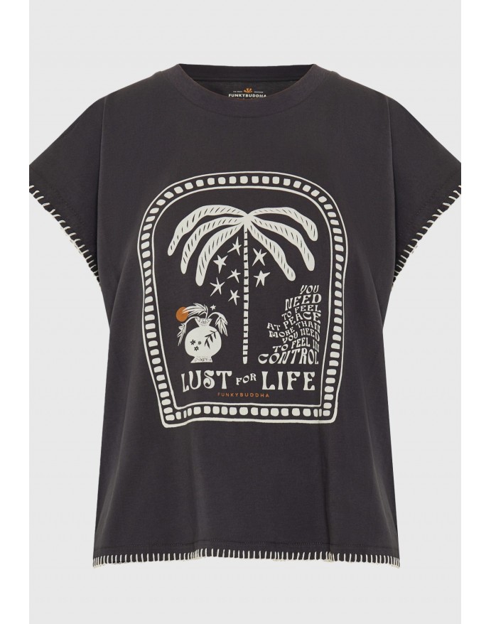 Funky Buddha Γυναικείο Relaxed T-Shirt με τύπωμα Anthracite FBL013-132-04