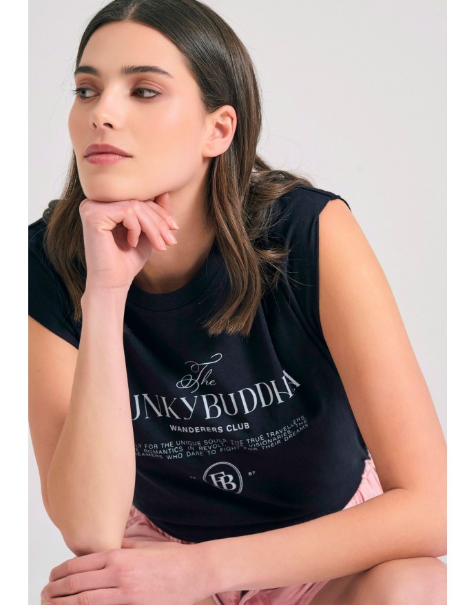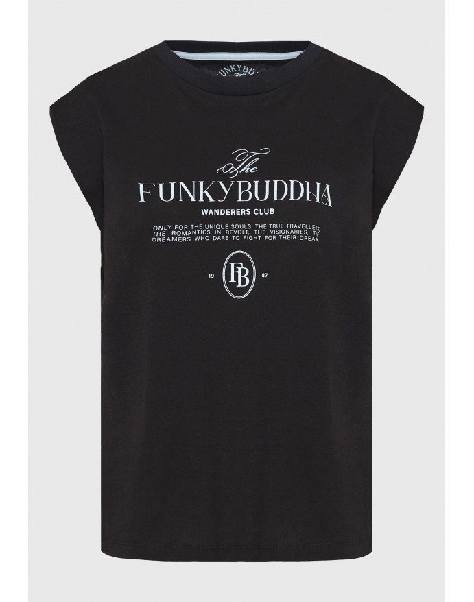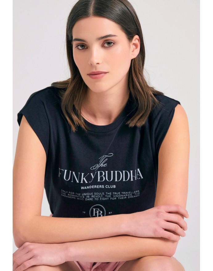 Funky Buddha Γυναικείο T-Shirt με τύπωμα στο στήθος Black FBL011-176-04