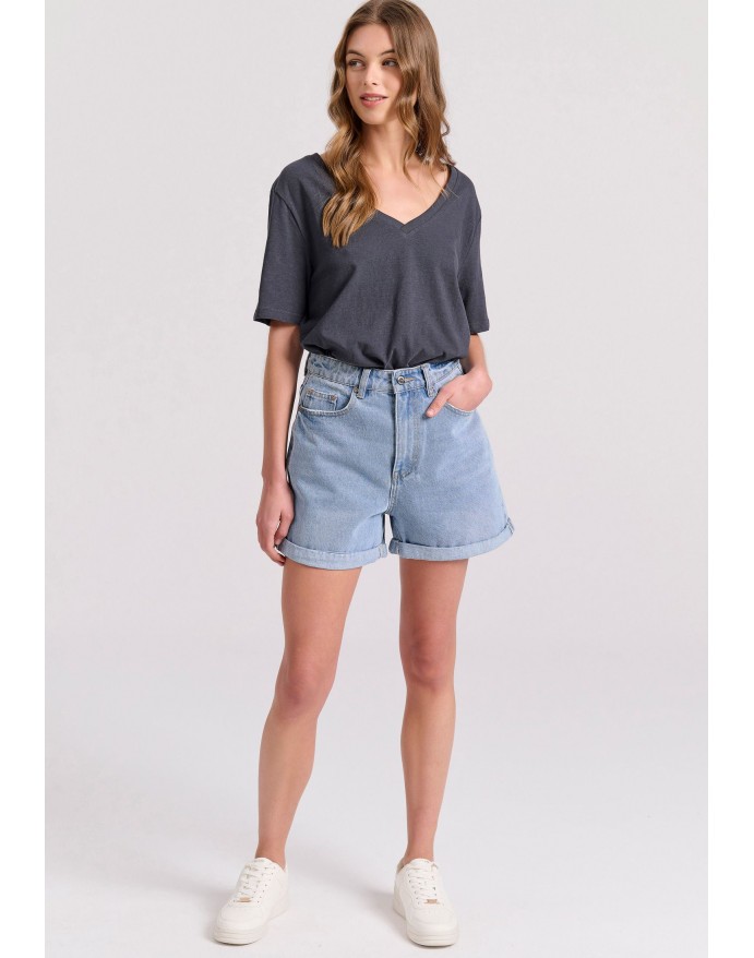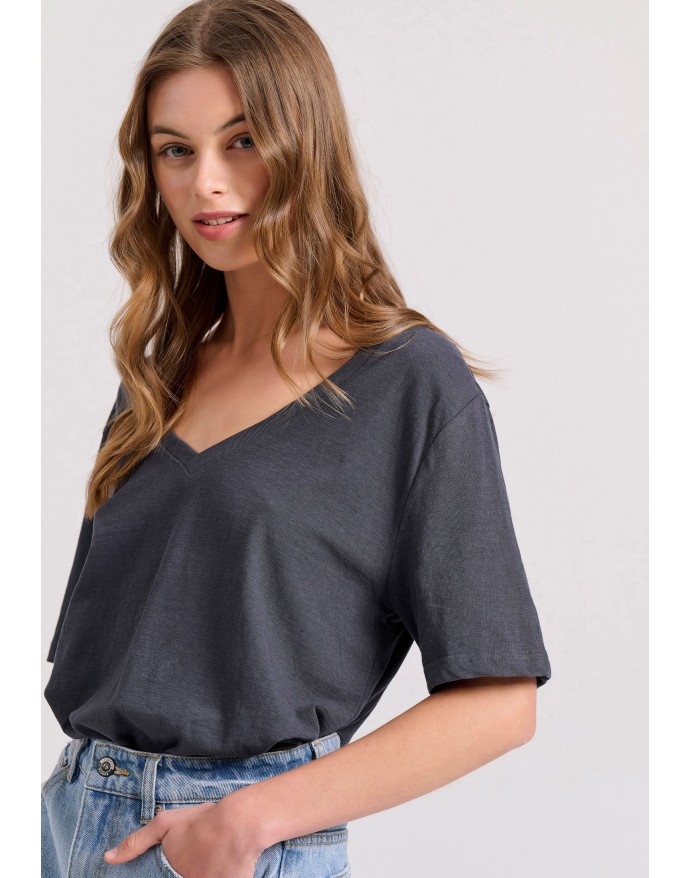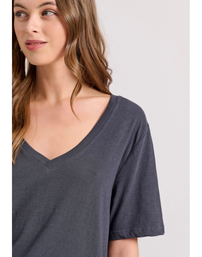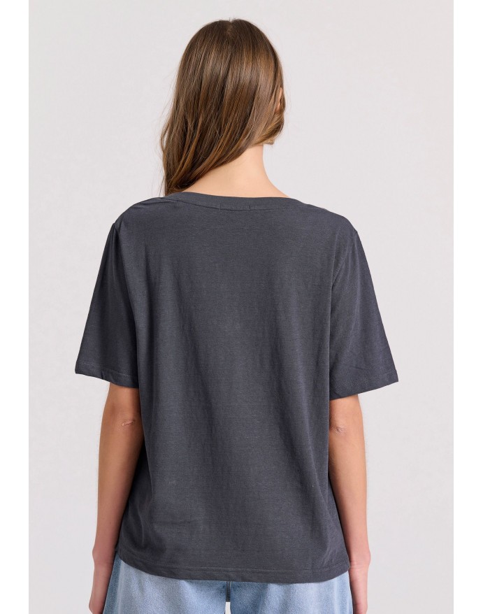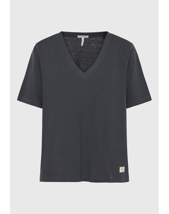 Funky Buddha Γυναικείο T-Shirt Relaxed Fit Linen Blend Anthracite FBL009-176-04