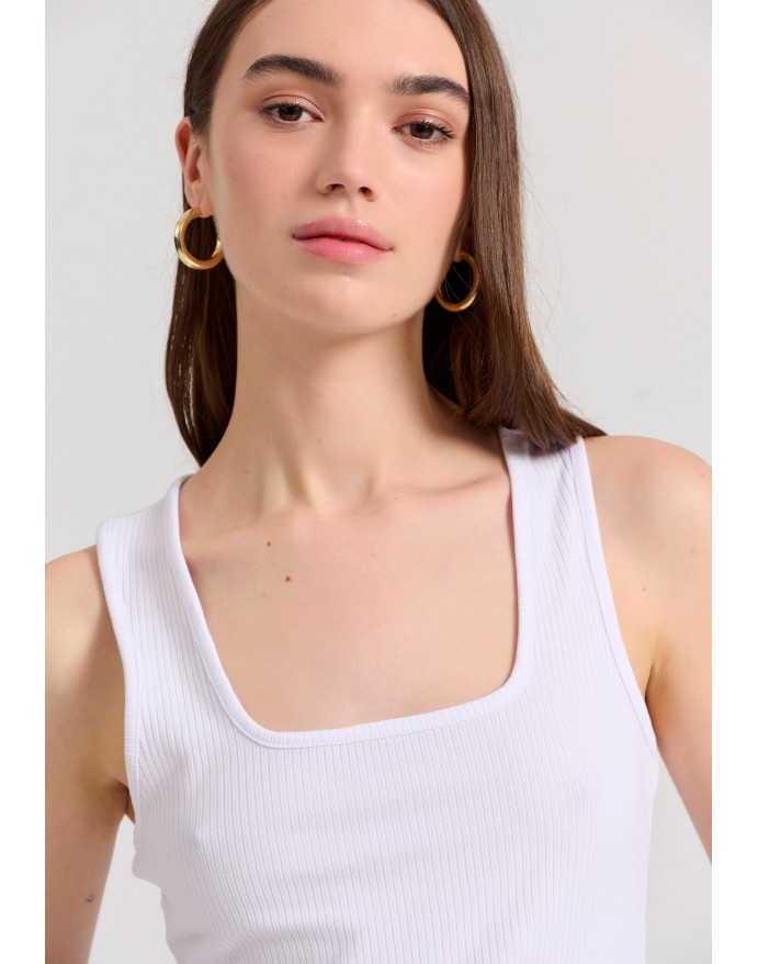 Funky Buddha Γυναικείο Tank Top σε Rib ύφανση White FBL009-101-17