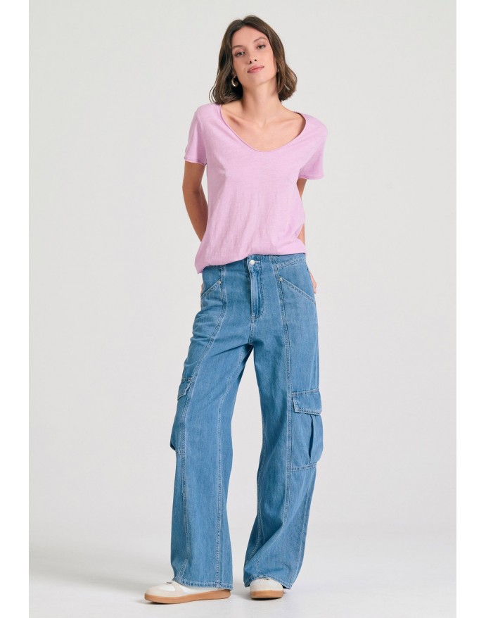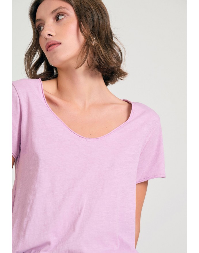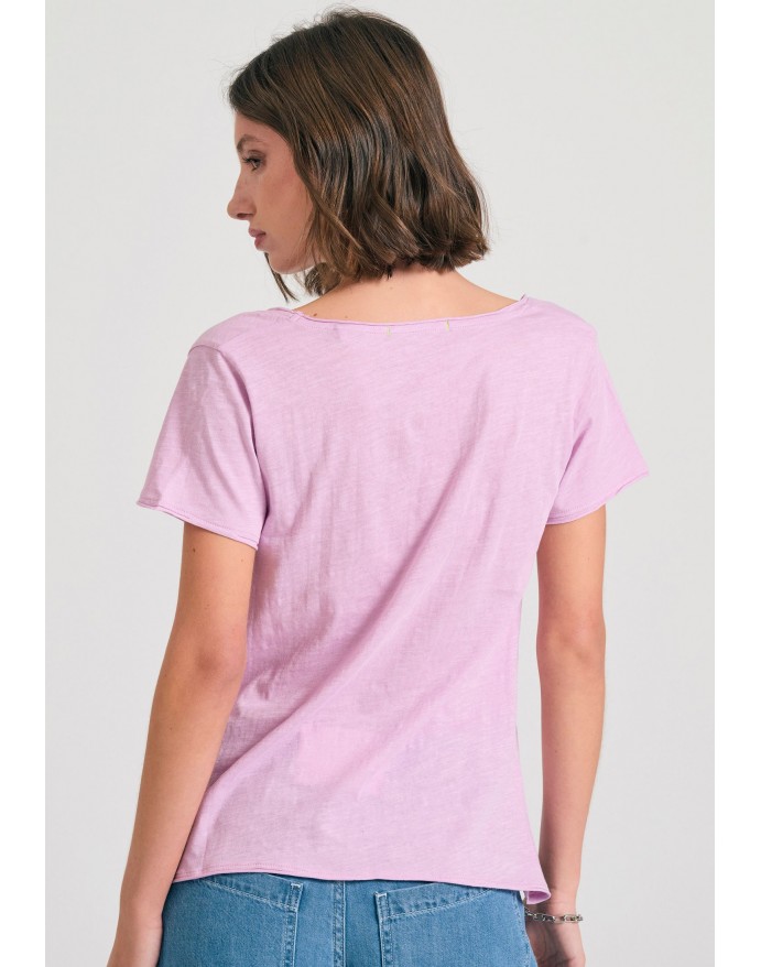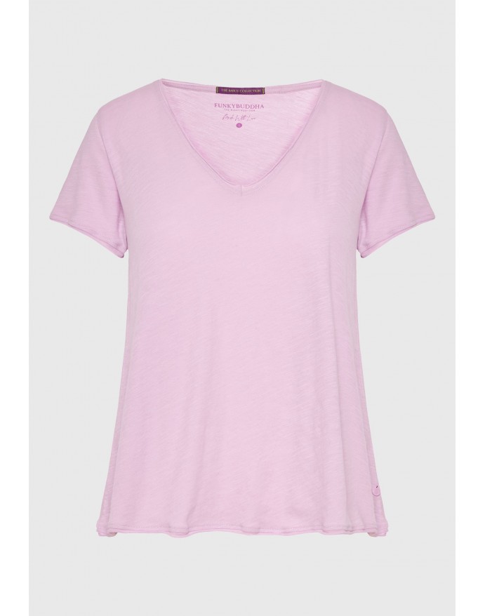 Funky Buddha Γυναικείο V-neck T-Shirt με raw edges Pink Lavender FBL011-100-04