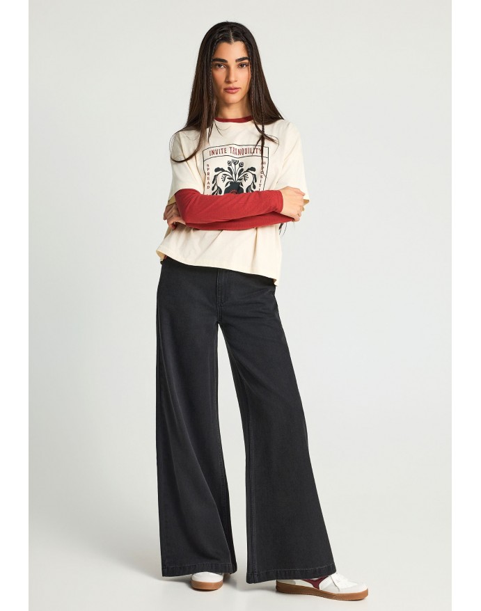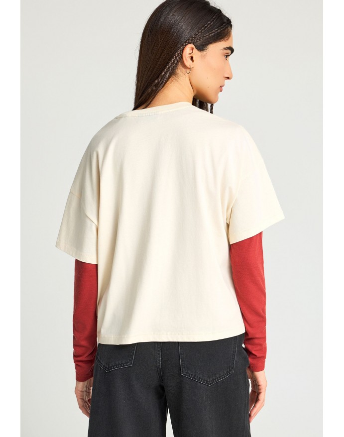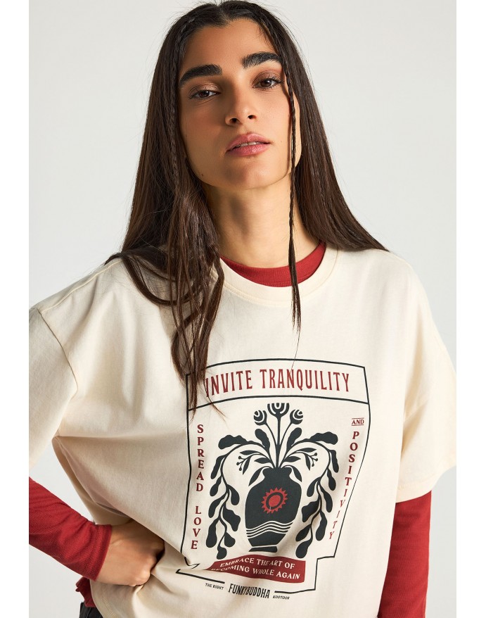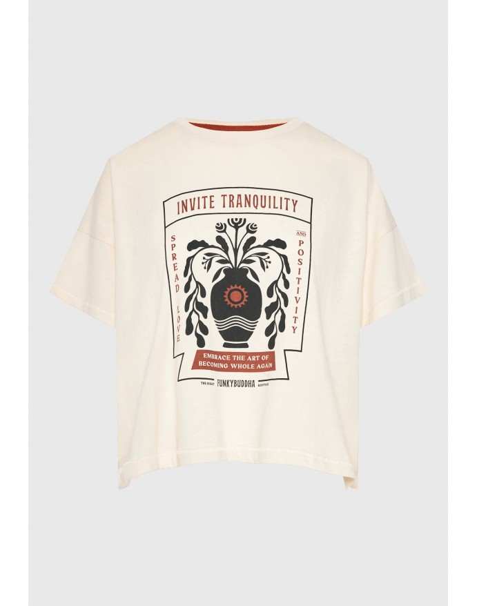 Funky Buddha Γυναικείο Βαμβακερό Loose T-Shirt με τύπωμα Chalk FBL013-121-04