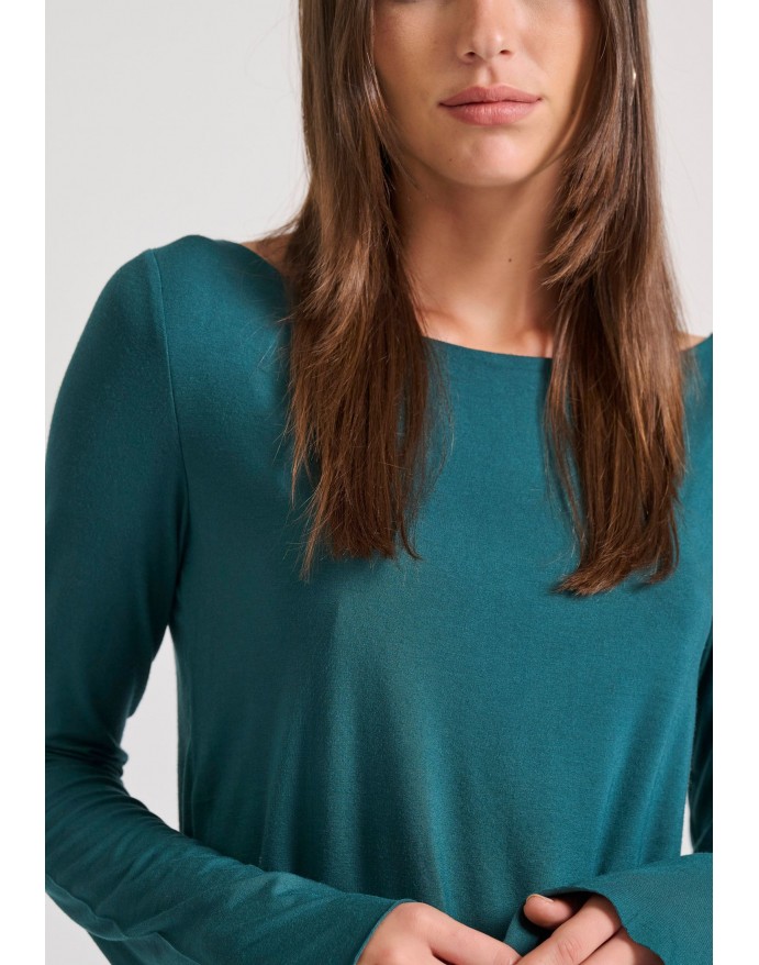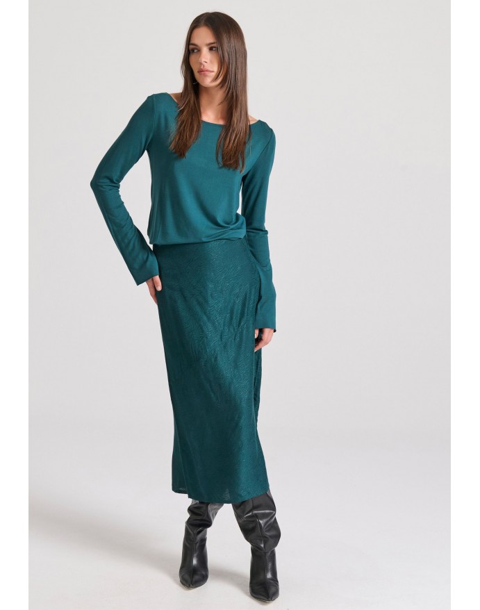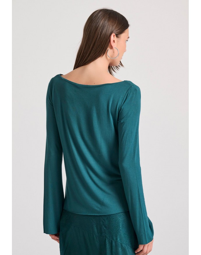 Γυναικεία μακρυμάνικη μπλούζα με raw edges Funky Buddha Dk Moss FBL010-103-07