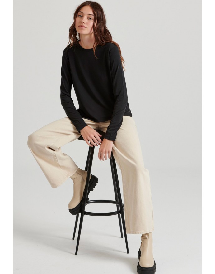 Γυναικεία μακρυμάνικη μπλούζα με στρογγυλή λαιμόκοψη Funky Buddha Black FBL010-108-07