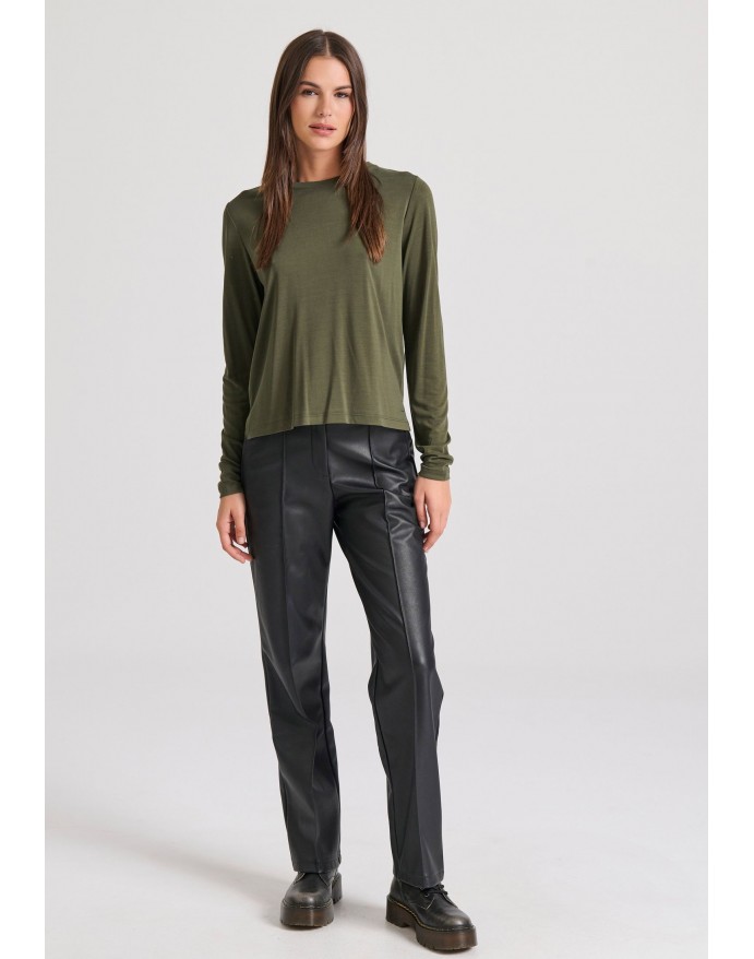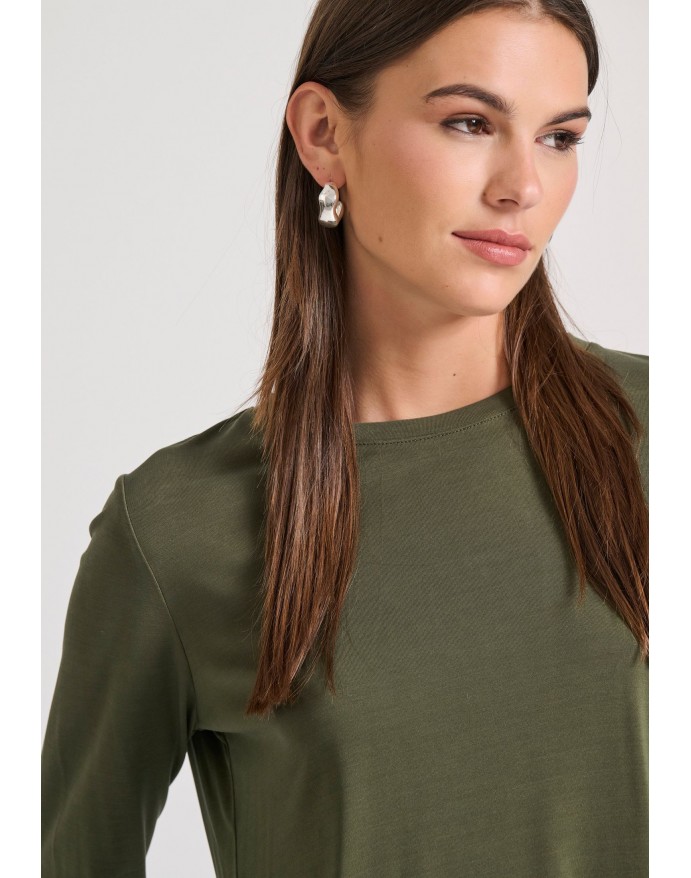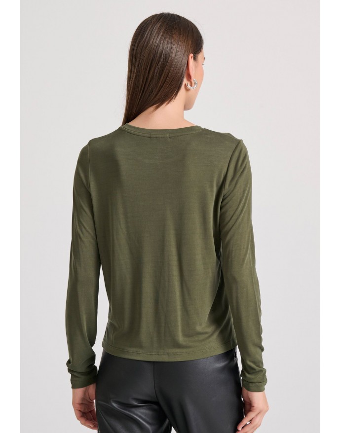 Γυναικεία μακρυμάνικη μπλούζα με στρογγυλή λαιμόκοψη Funky Buddha Khaki FBL010-108-07