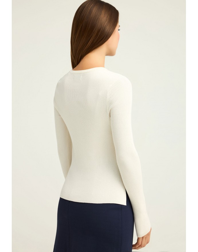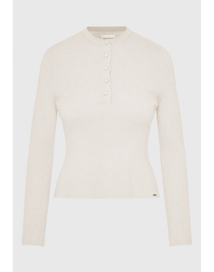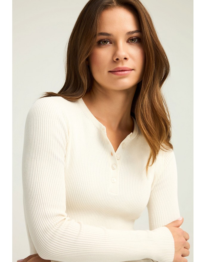 Funky Buddha Γυναικεία Rib Πλεκτή Μπλούζα με henley λαιμόκοψη Off White FBL012-127-09